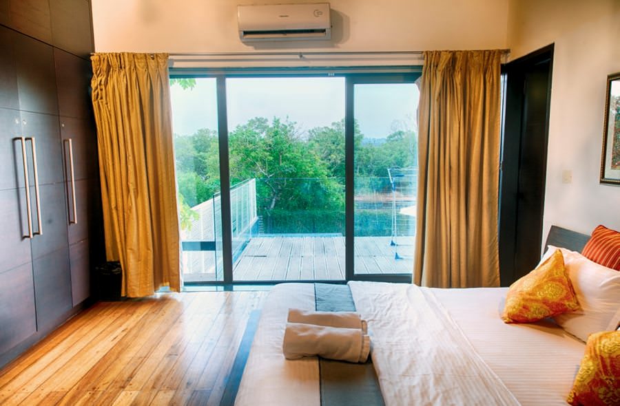 Villa Rio is a luxurious Private Pool 4-bedroom villa housed in a secure and private complex of villas that offers the perfect Goan getaway to vacationers. Located near the main Candolim Church, Villa Rio is just minutes away from the busy and popular Candolim beach. Possessing all the modern amenities like a cosy sitting room set-up, air-conditioning, a large TV, a garden and tasteful décor, Villa Rio has catapulted itself to being one of the most sought-after luxury villas in Goa. The rooms in the villa are large and airy and boast of large beds, wardrobes and en-suites. The master bedroom on the first floor also comes fitted with an open-air Jacuzzi that overlooks the swimming private pool, thus mesmerizing its guests with an unbeatably romantic experience. This Private Pool villa also offers a fully functional kitchen with all the latest appliances such as a fridge, deep freezer, microwave, kettle, gas stove, serving ware, cutlery etc. as well as house-keeping facility to further up the feel-good vibes. The open kitchen format makes it a wonderful place to host parties with friends and family. Additionally, a chef to cater to one’s culinary needs and a driver can also be provided on demand at an additional cost. The dining area is located in the basement and offers views and access to a private garden which also houses the 20 metres by 4 metres swimming pool. An open bar and views of river are the other USPs of this beautiful villa that offers the very pinnacle of luxury to its guests. Villa Rio is the stuff that holiday dreams are made of, offering its guests the best in indulgence and holidays to cherish for a lifetime. Tips : One of the most booked villa to party, so whats stopping you to holiday in this Private Pool Villa In Goa.